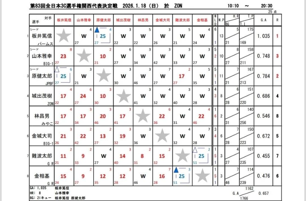 全日本3C選手権 [関西代表決定戦] 結果