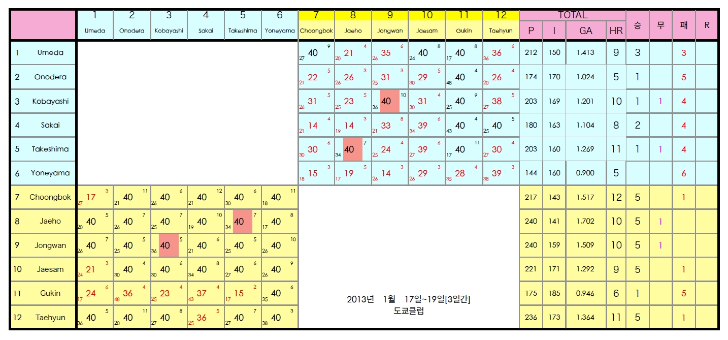 1月17日(木)~19日(金)にかけて開催されました、日韓対抗戦の結果です。