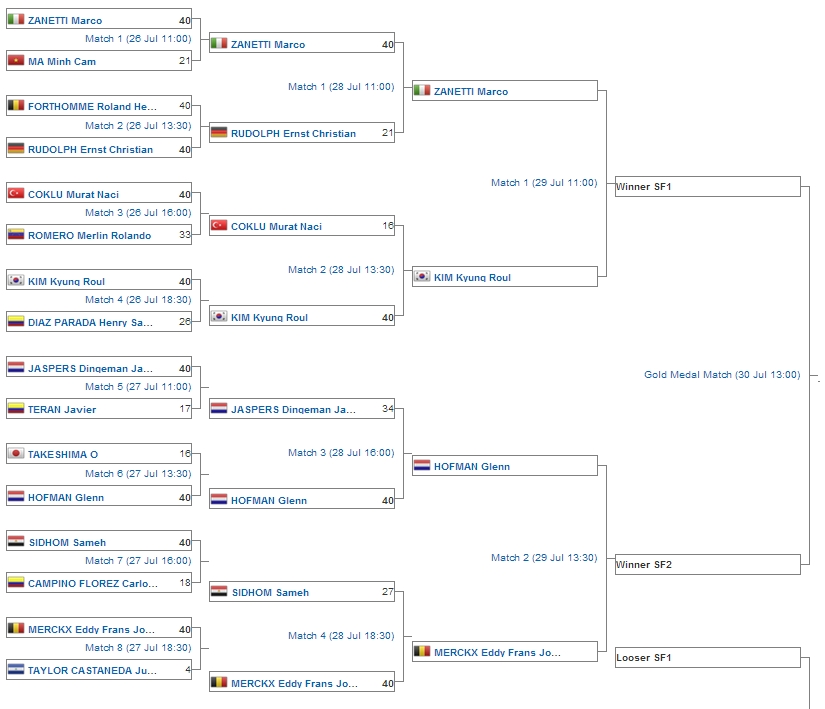 The World Games [竹島プロ敗退] カテゴリー: ニュース 投稿日: 2013/07/29 The World Games 2013 [7/24-8/4 CALI(COLUMBIA)] スリークッション競技 [7/26-30] 途中結果を掲載させて頂きます。 竹島 欧プロは、初戦敗退の結果です。ご声援を賜り、ありがとうございました。 2013_WorldGames_2 Tweet