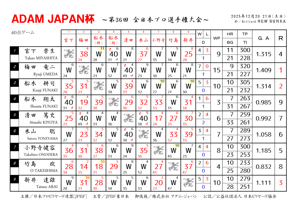 全日本プロ選手権 ADAM JAPAN杯 [梅田プロ戴冠]