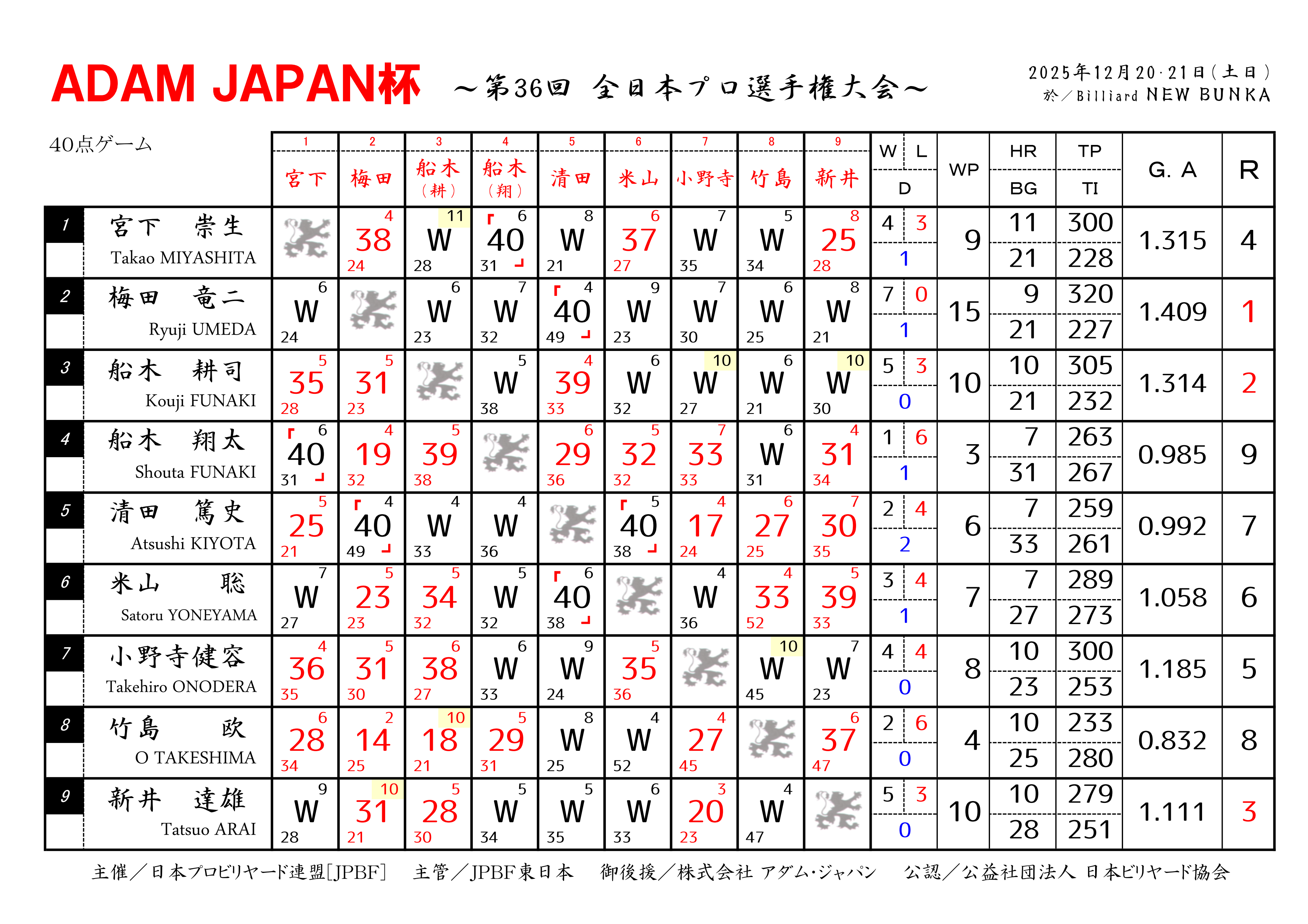 2025年12月20・21日(土日)ビリヤード ニュー文化