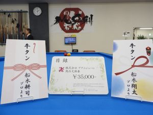 優勝の梅田プロへはMUSASHIキュー 他