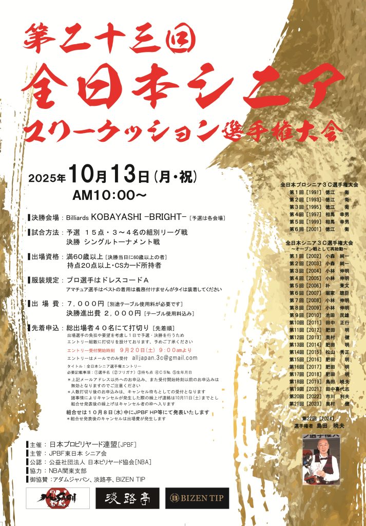 主催 : 日本プロビリヤード連盟[JPBF]