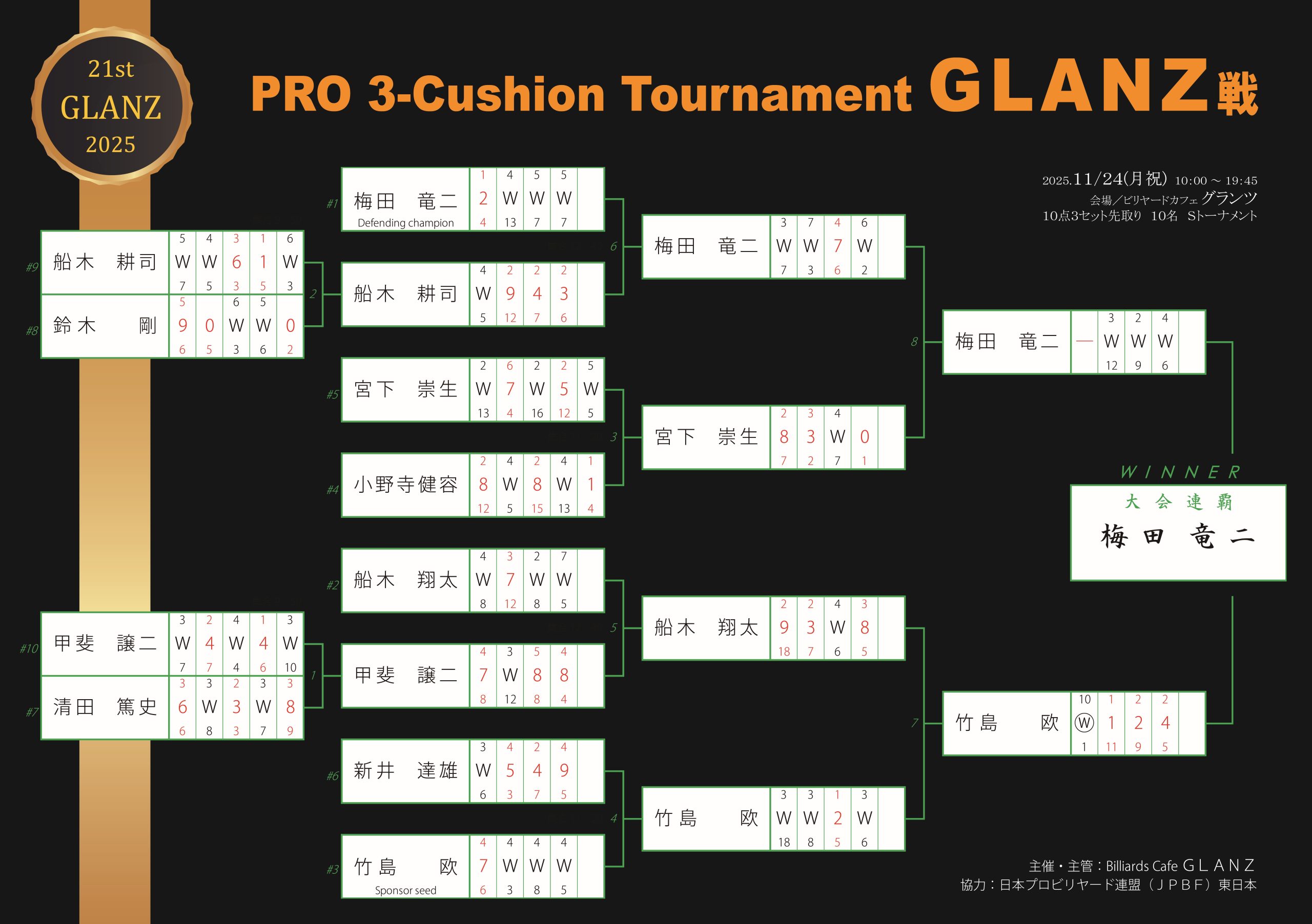 梅田竜二プロが連覇達成!