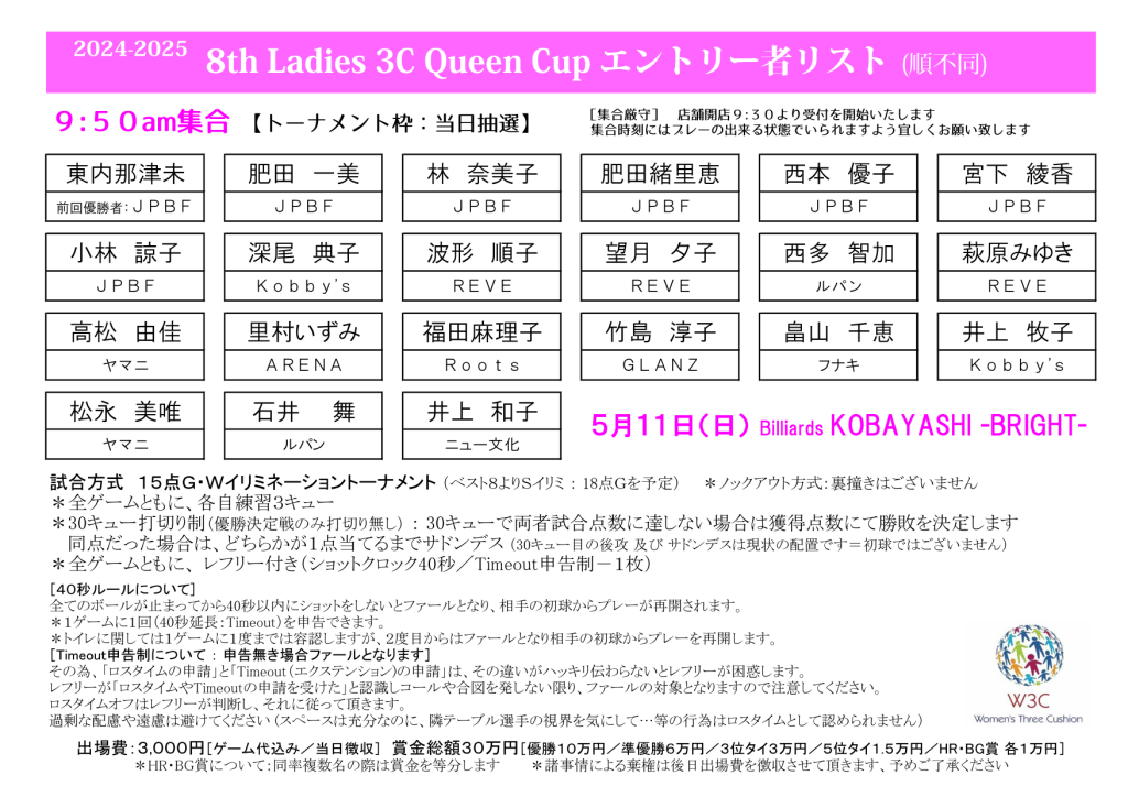 W3C FaceBook : https://www.facebook.com/W3C-Womens-Three-Cushion-562854167081480/?fref=ts