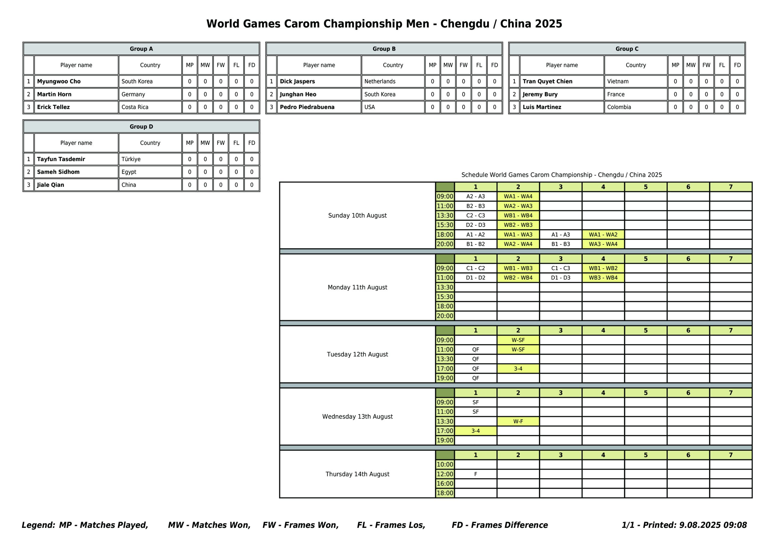 THE WORLD GAMES ビリヤード競技明日より![キャロム組合せ]